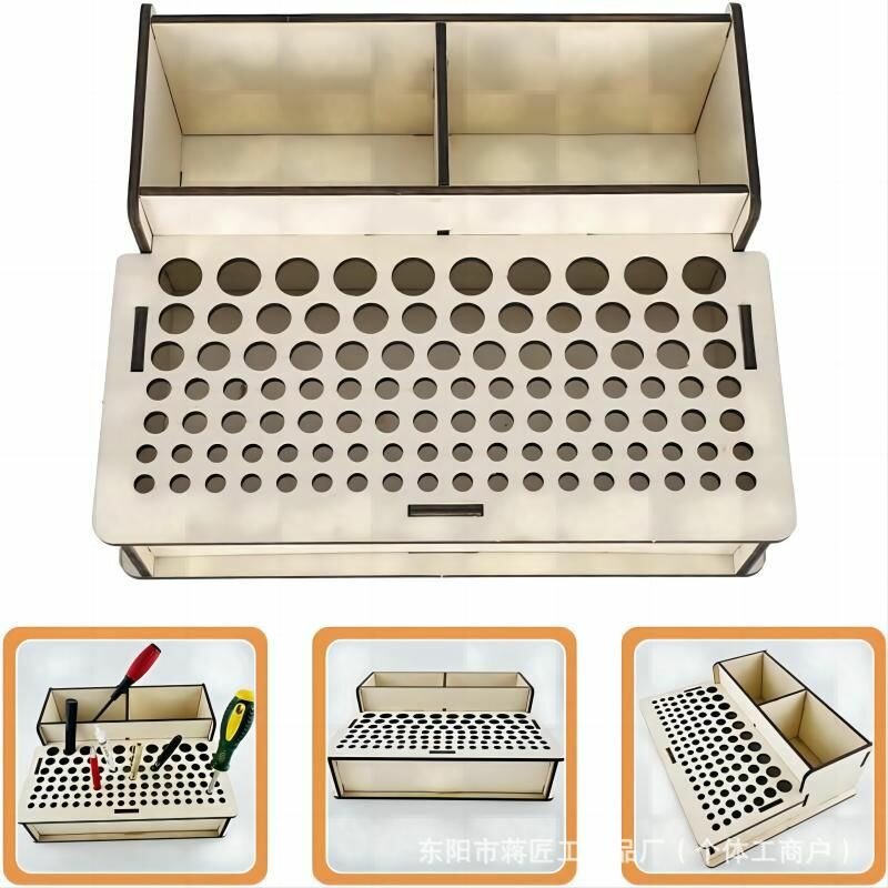 Optimisez votre espace de travail avec cet organiseur en bois durable, idéal pour ranger vos outils manuels. Avec des compartiments spacieux et un design perforé pour un accès facile, il est parfait pour les artisans et bricoleurs.