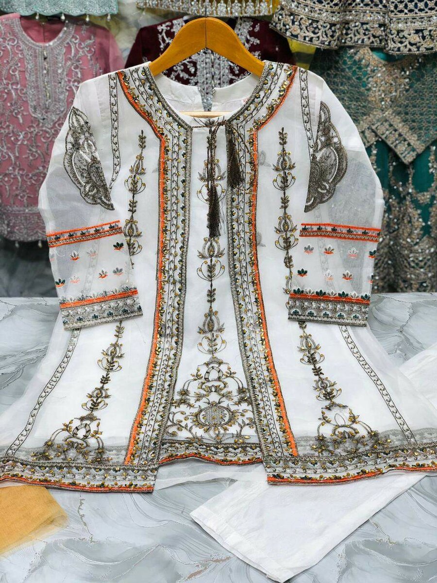 *New Beautiful Collection For Kids* Organza Stuff, Theard & Tilla Embroidery, Beats Work, Cut Dana Work, Embroidery Saleves, Katan Slik Stuff Trouser, Nett Stuff Dupata, Nice Stitching, 3pc Kids Size : 26 to 36 Price: 2750 with dc Th Th