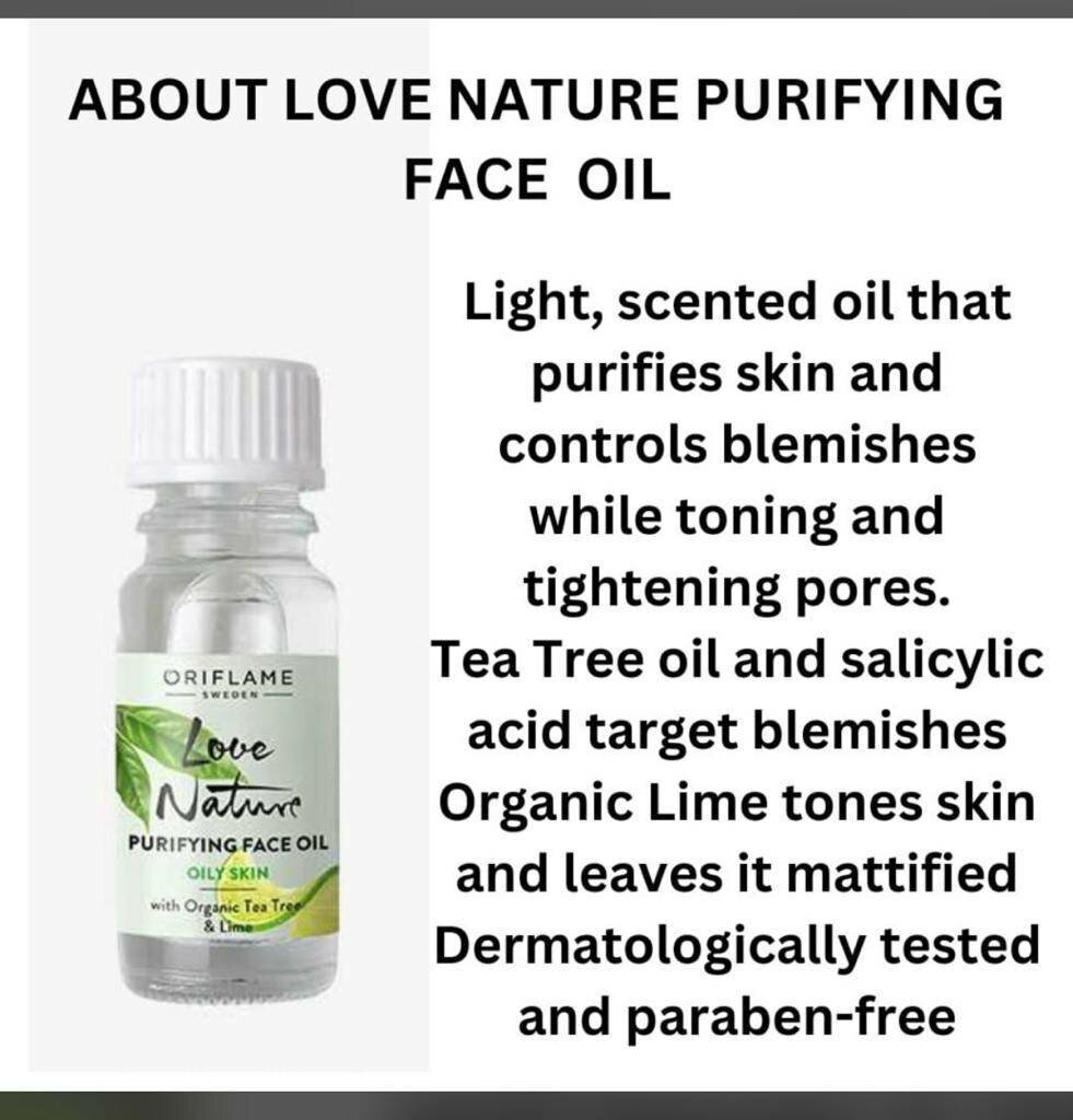 The love nature purifying face oil with tea tree and lime is a good product for tightening facial pores, removal of skin tags, acne treatment, fades dark spots and fading of acne scars. If you have excessively oily skin but love wearing makeup, wear this oil as a mattifying face prep and thank me later.