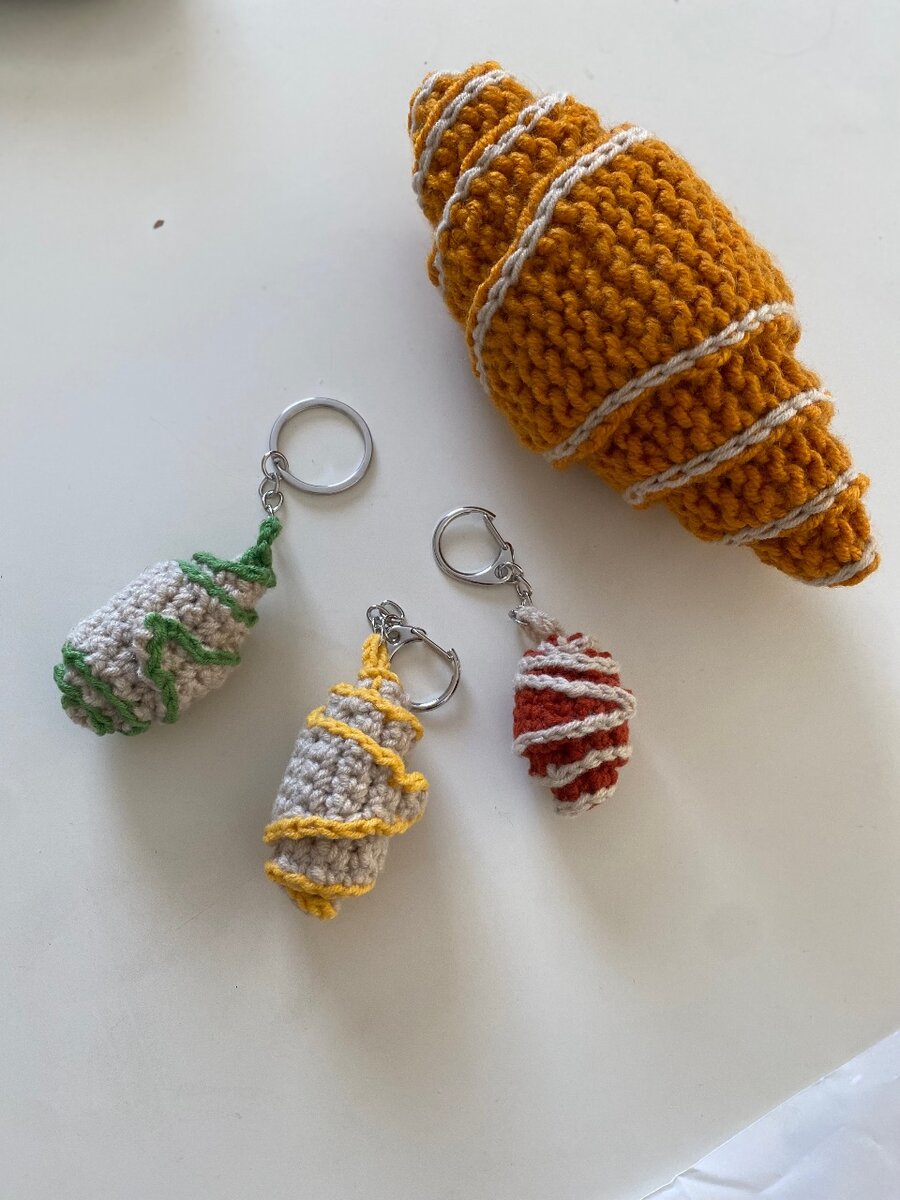 Брелки круассаны, связаны крючком из х/б пряжи