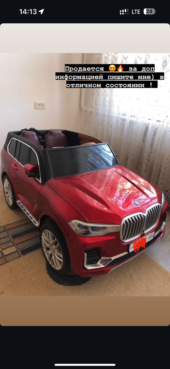 Машинка в отличном состоянии, двухместная, управление пультом и педалями/рулем самостоятельно, заряжается зарядкой, так же 2 аккумулятора. Двери открываются