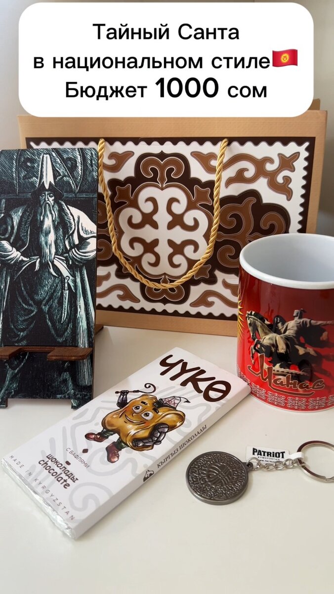 Подарочные боксы в национальном стиле Что входит в стоимость бокса? -коробочный пакет с орнаментом ( лента) -брелок -подставка для телефона -кружка -шоколадка Чуко Цена: 1000 сом