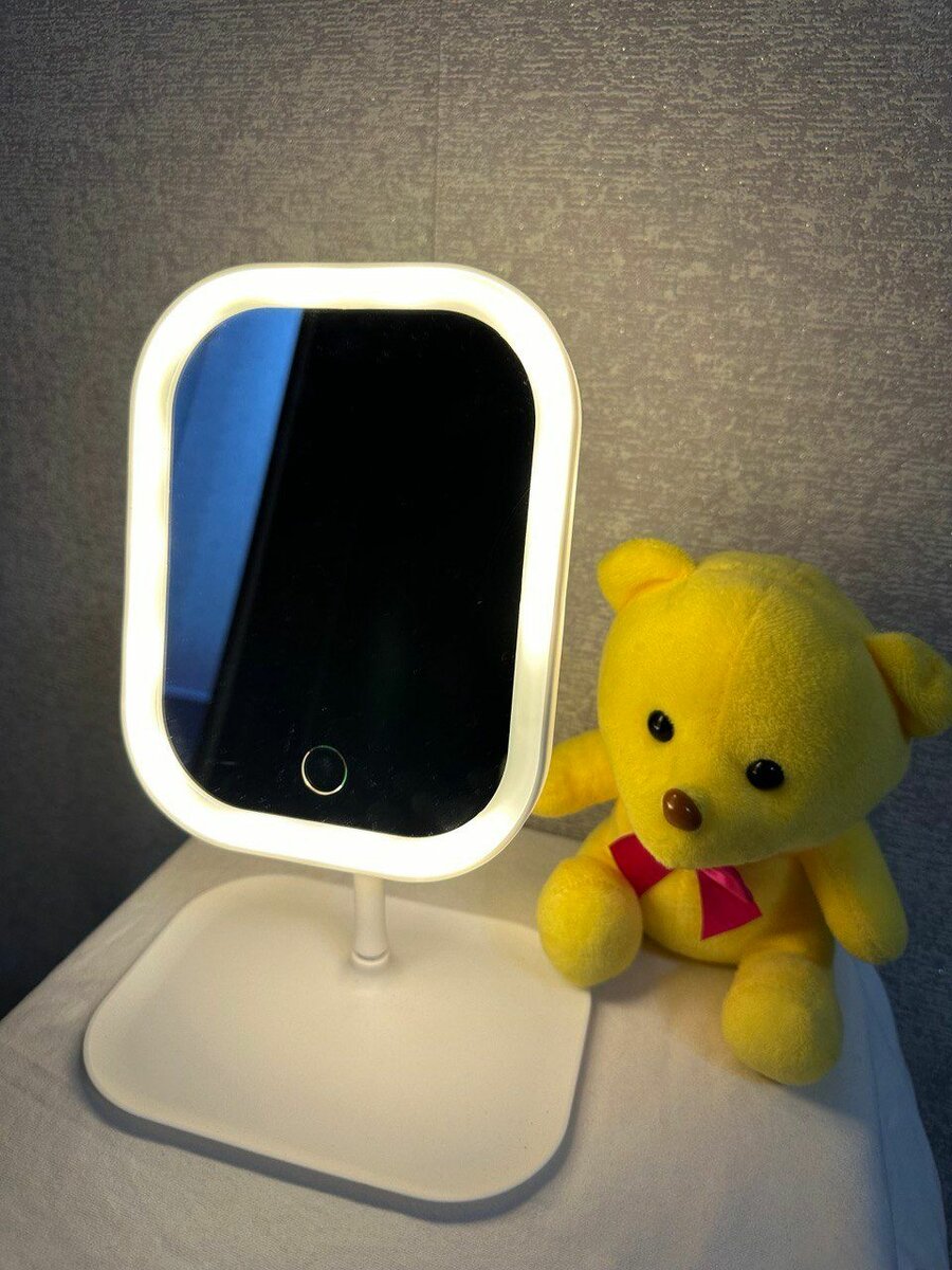 Зеркало с подсветкой на ножке. Качество шикарное. Заряжается️️) имеет USB - кабель