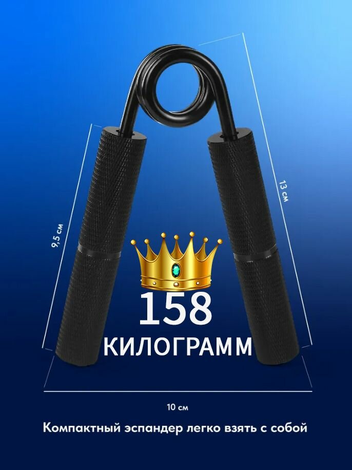 Продаётся стальной кистевой эспандер жесткостью 158 КГ или 350 фунтов. Развивает силу хвата, предплечья и пальцы. Помимо этого, можно использовать как определитель главного в подъезде или кто босс качалки. Идеальный подарок любому мужчине.