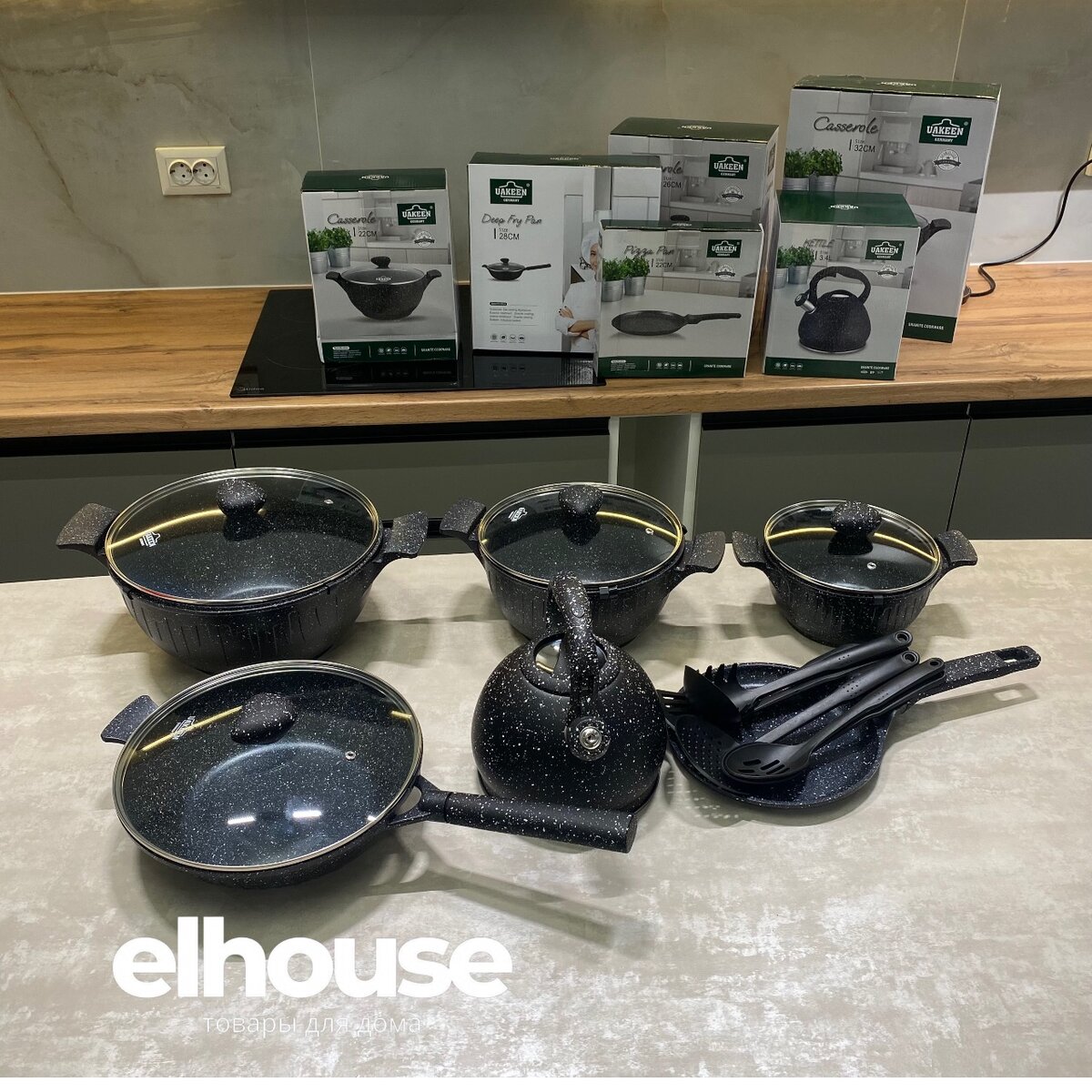Шикарная новинка от компании UAKEEN ️6/1 Германия немецкий качество Казан 8,4,2 литра Чайник Блинница 22см Сковородка 28см Антипригарная покрытие В подарок: поварешки,захватка,фартук Всего за 6500с