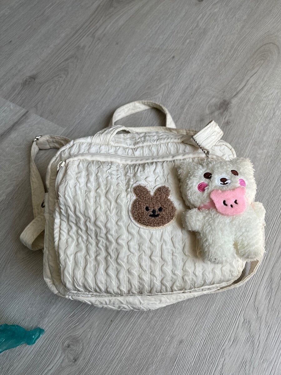 Вместительная сумка хорошего качества Имеется 3 отдела с замками Цвета есть черный,молочный и белый С брелком Очень удобная сумка можно стирать в машинке Абсолютно новая