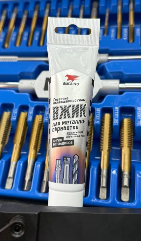 Смягчает и ускоряет процесс сверления, резки, фрейзеровки, токарной обработки, развертывания и нарезания резьбы. Пригоден для работ с различными марками стали, металлами и сплавами повышенной твердости или сложными в обработке, такими как: титан, нержавеющая сталь. Вязкий состав и высокая адгезия (липкость) позволяют использовать Вжик при сверление снизу вверх, исключая разбрызгивание и стекание с инструмента.