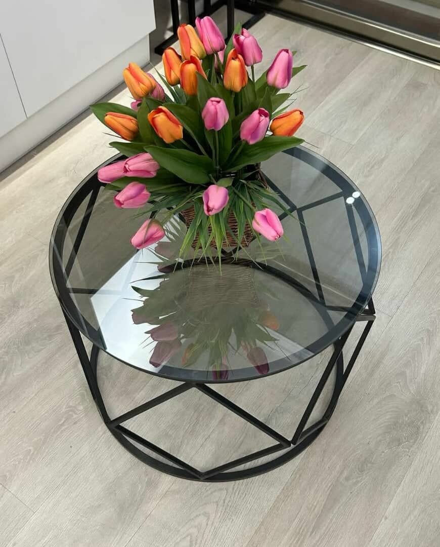 Стильный журнальный столик "Гранат" каркас из прочного металла, столешница из стекла. Впишется под интерьер.