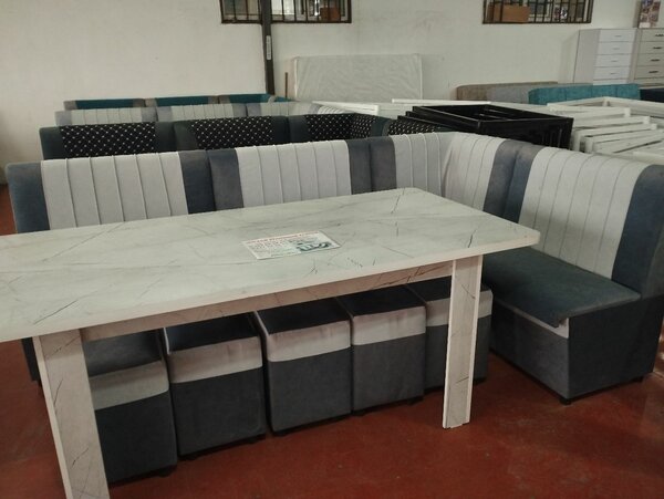 Размеры 2,50/1,70 Стол 1,80/0,90 5 шт пуфика Доставка по городу бесплатно. Также есть рассрочка от 3 месяцев до 6 мес. ID паспорт и никаких документов.