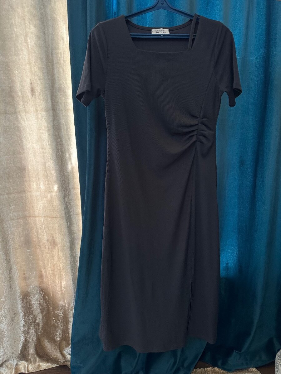 Платье с коротким рукавом, темно-серого цвета, новое