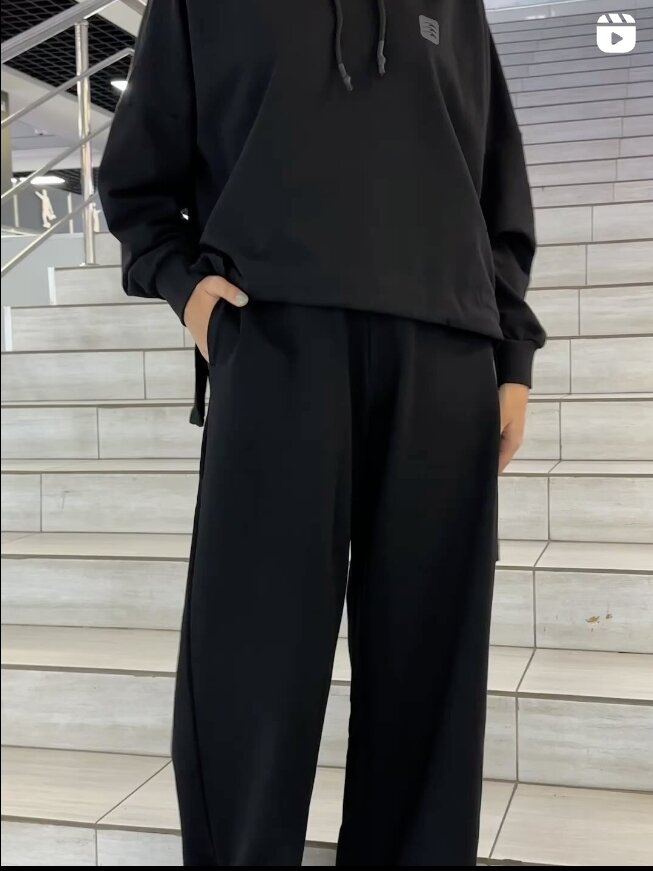 Удобная толстовка с капюшоном и свободные брюки идеально подходят для повседневного образа или занятий спортом.