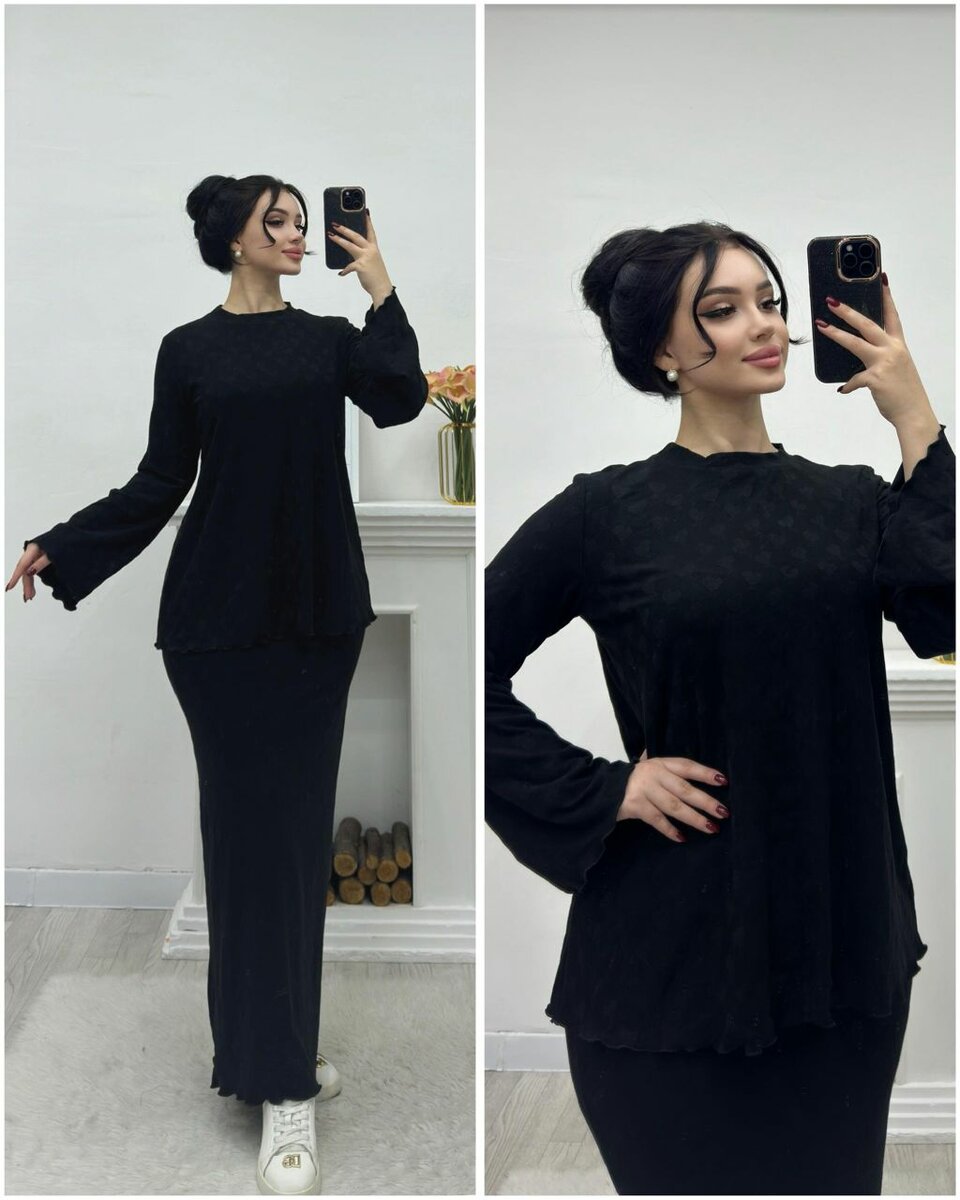 В наличии двойка юбка в комплекте с кофтой Ткань:ворсистый мягкий трикотаж (85% шерсти) Размер:стандарт в пачке 4 штуки одного цвета