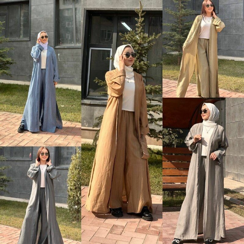Удобная, легкая и практичная двойка, абайка с брюками, ремешок в комплекте Размер: стандарт Ткань: Дорогой Тенсель Лён(легкая, дышащая и приятная ткань к телу) Расцветок:5