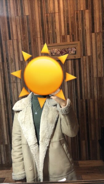 Мягкая легкая дубленка чуть ниже колен на рост 165