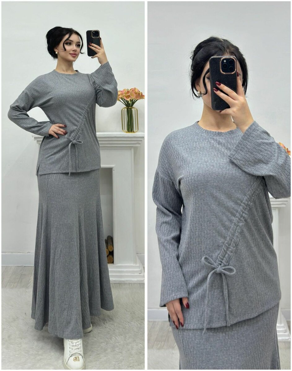 Получили стильную двойку на каждый день,юбка гаде в комплекте с кофтой на завязках ткань: ворсистый мягкий трикотаж (85% шерсти) размер: стандарт в пачке 4 штуки одного цвета цена: 1400