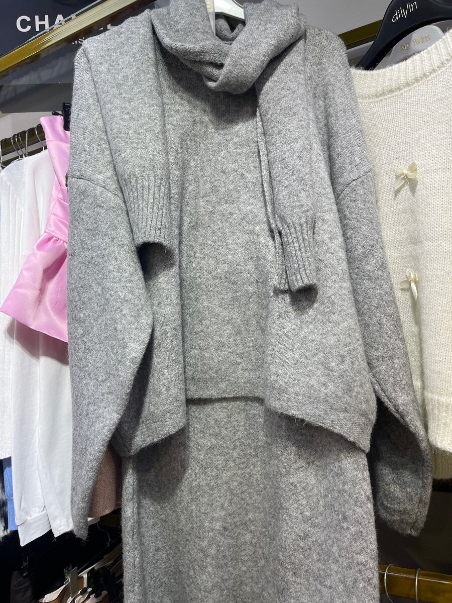 Трикотажный костюм свитер+плиссированная юбка, серый