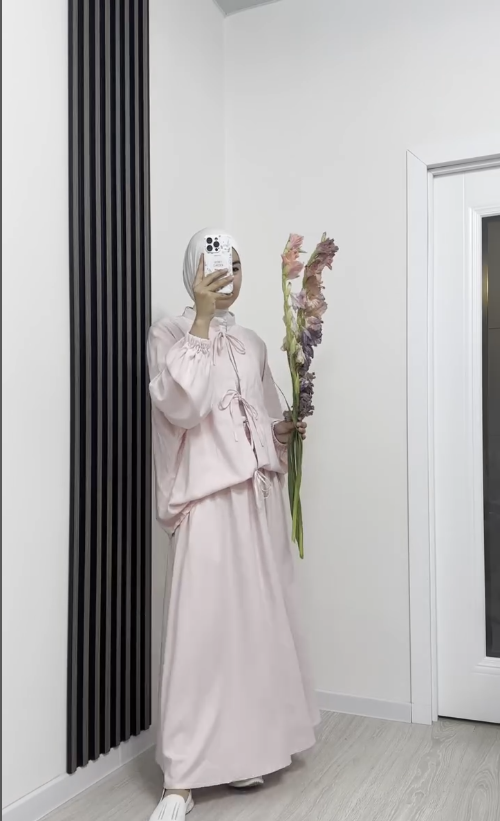 Женская розовая рубашка с юбкой
