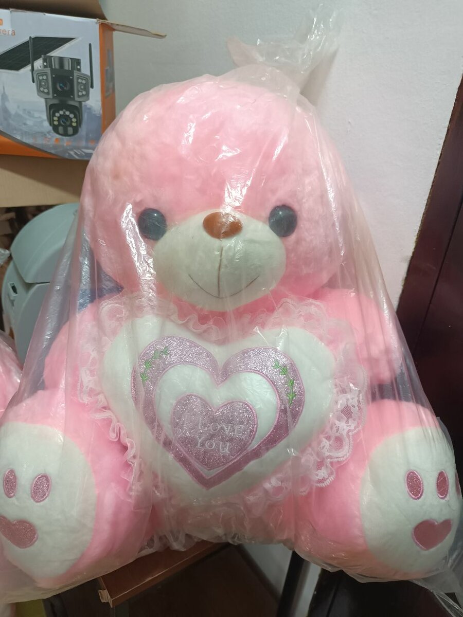 Démontrez votre affection avec cet adorable ours en peluche câlin. Disponible en rose et rouge, chaque ours est doux et parfait pour offrir à votre bien-aimé. Ses cœurs et son message "I Love You" apportent une touche spéciale idéale pour la Saint-Valentin, un anniversaire, ou simplement pour dire "je t'aime".