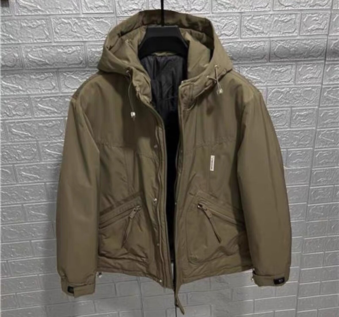Парка капюшон жана жамаачы чөнтөктөрү менен, беж түстө.