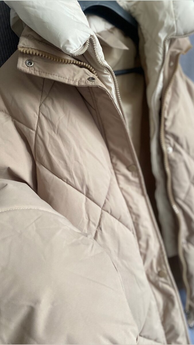 Продам зимнюю куртку. Очень тёплая и стильная, цвет белый с бежевым, смотрится как обманка (двойной эффект). Идеально впишется в гардероб в корейском стиле объёмная, модная и уютная.