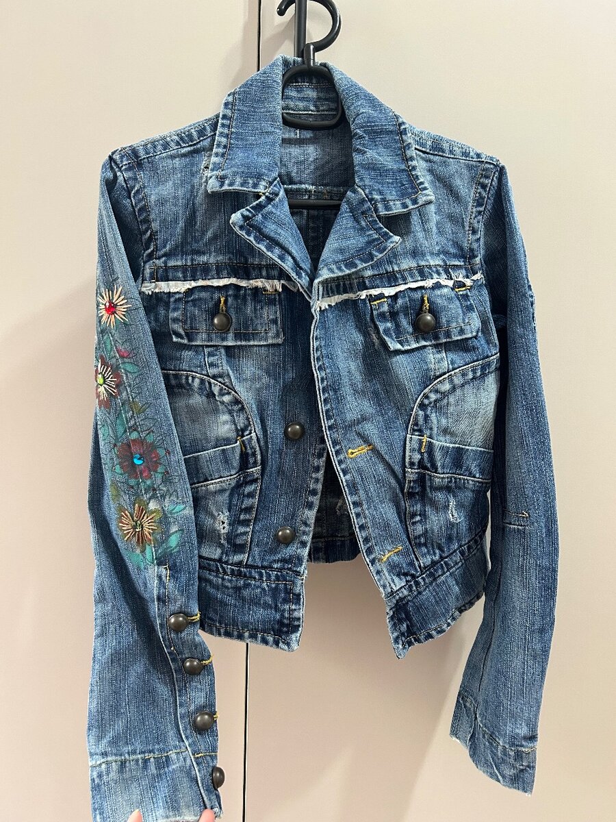 Куртка джинсовая с вышивкой, очень красивая, укороченная, размер xs