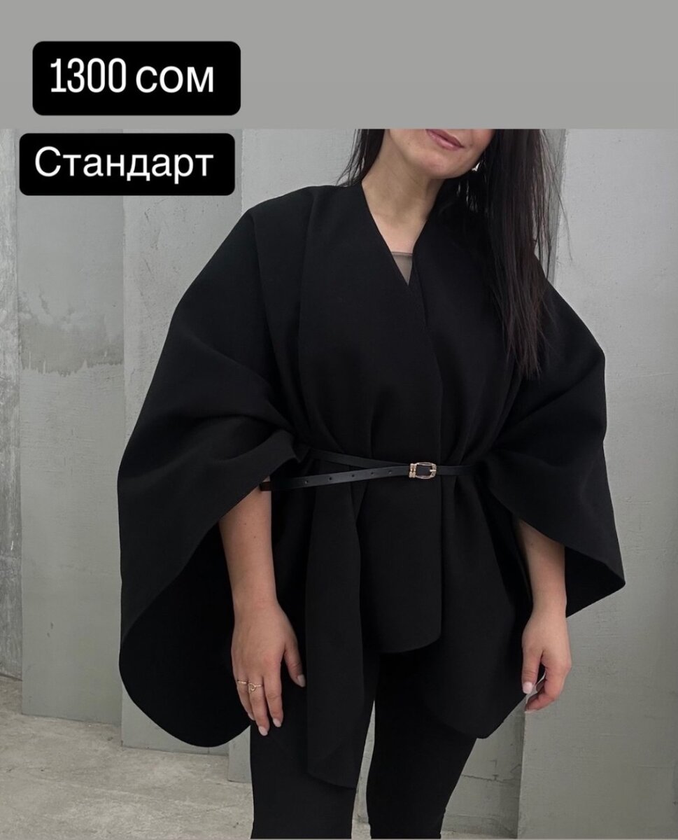 Пончо Размер стандар Цвет черный В комплекте ремень До 48 размера