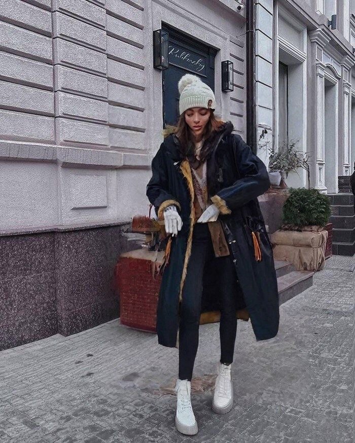 Утепленное болоньевое пальто с мехом