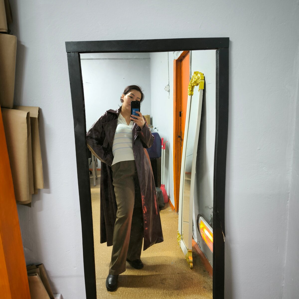 Тренч из ЭКО кожи лак в цвете Бургундии