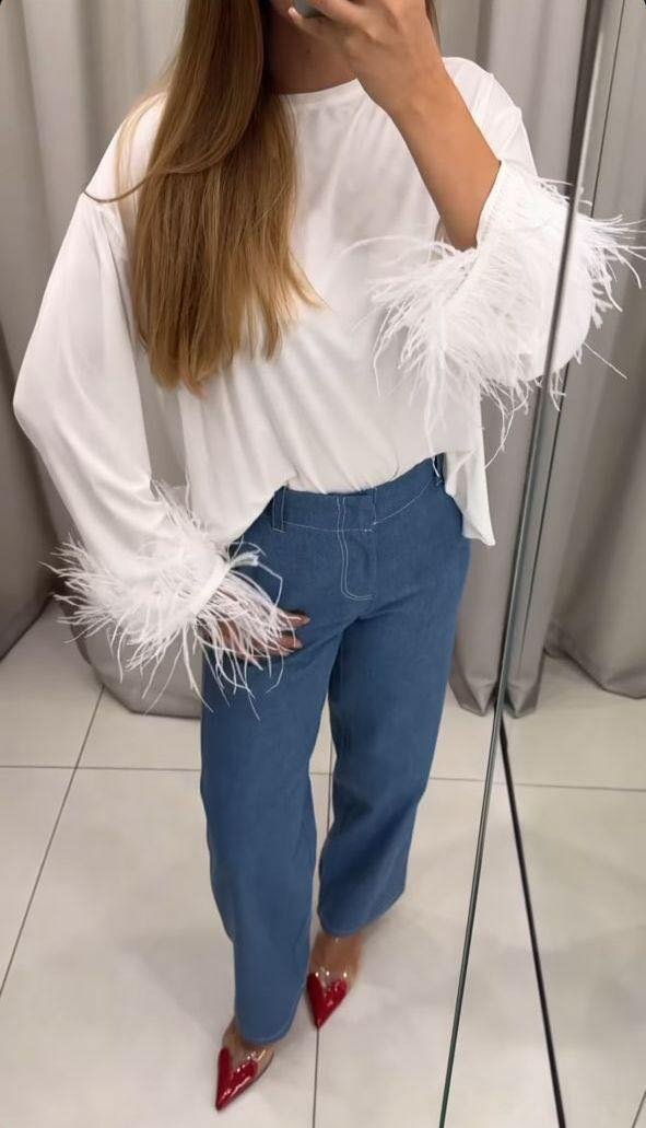 Кофта с перьями , турецкий ткань ! Хит этого сезона