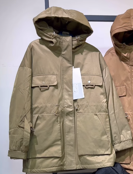 Парка капюшон жана жамаачы чөнтөктөрү менен, беж түстө.