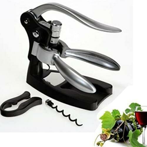 : tire bouchon en métal avec acier brossé à levier - coupe capsule - mèche - socle de support Simple et facile à utiliser - Ouverture et fermeture facile - Longue durée de vieTire-bouchon à levier Executive - Tire-bouchon à système de levier, corps aluminium, spirale acier enduite de Teflon, coupe-capsule et plaque métal