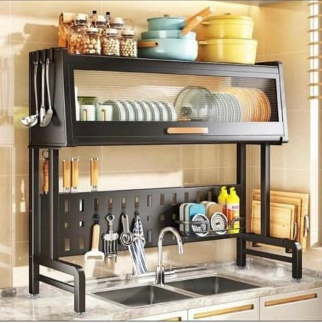 2 Tier Over Sink Dish Drainer Plates Rack - Black