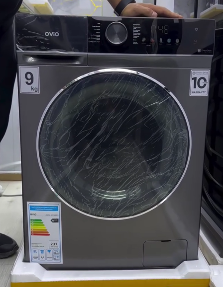 OWM-90T800DS 9кг, серый, DD прямой привод, закрытый черный люк, цветной дисплей, термо обработка, стирка паром, дозагрузка белья, 595*628*850мм.