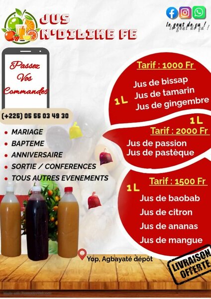 Jus de Bissap,tomi,baobab,citr