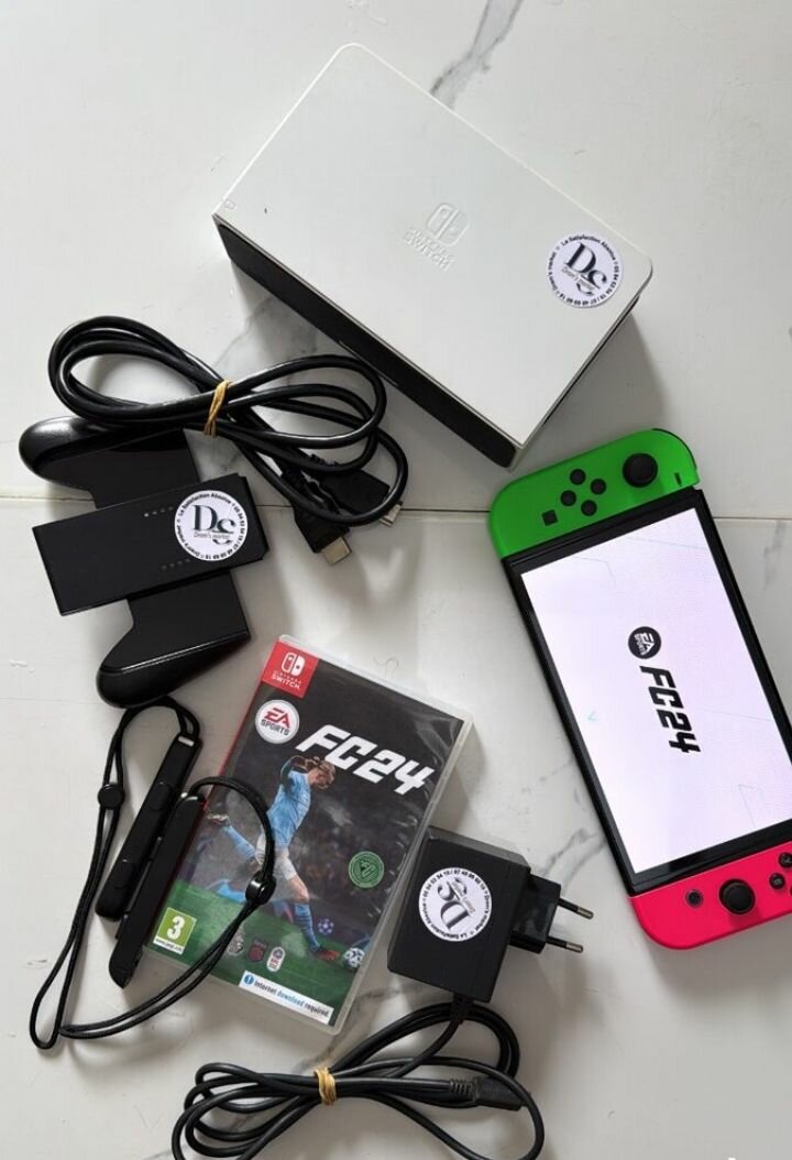 Découvrez le pack Nintendo Switch avec manettes Joy-Con, chargeur et jeu FC 24 inclus. Profitez d'une expérience de jeu immersive à tout moment, que ce soit en déplacement ou à la maison. Idéal pour les passionnés de jeux vidéo et les moments de divertissement en famille.