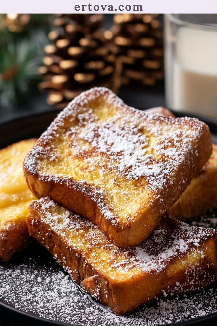Savourez notre délicieux pain perdu. Il est légèrement croustillant à l'extérieur et moelleux à l'intérieur. Dégustez-le chaud avec du sucre glace.