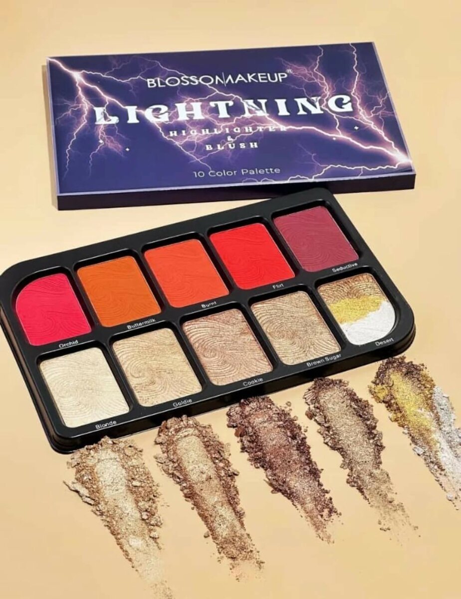 Découvrez la palette de maquillage Blossomakeup Lightning. Parfaite pour des looks éclatants avec ses fards intenses et illuminateurs. Un must-have pour transformer votre routine beauté.