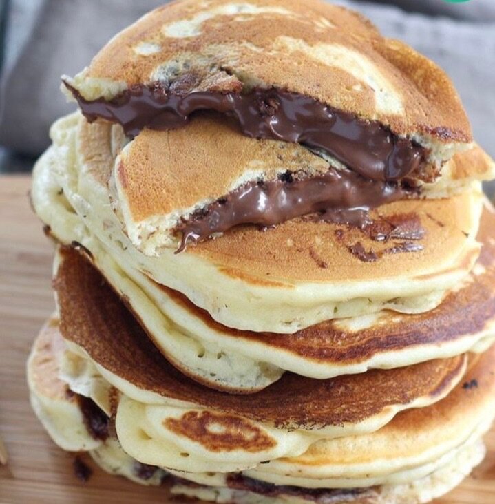 Cinq pancakes épais et moelleux, garnis dun cœur fondant au chocolat. Une douceur irrésistible pour les vrais gourmands !