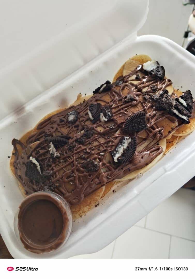 Découvrez nos pancakes généreusement tartiner de chocolat Nutella au biscuit Oreo