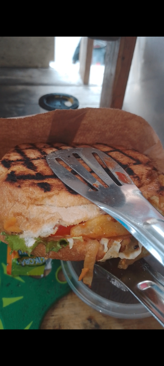 Découvrez ce panini gourmet savoureusement grillé avec de la viande Hachée des oeufs des frittes des petits pois des légumes frais et une sauce onctueuse. Parfait pour un déjeuner rapide ou un dîner convivial. Sa texture croustillante et ses ingrédients de qualité supérieure en feront votre favori.