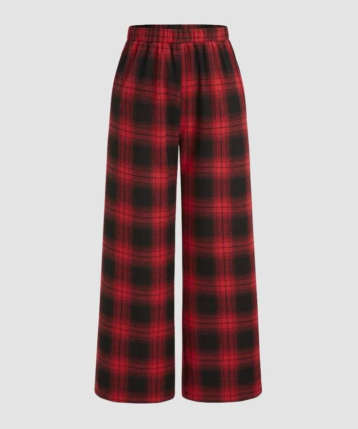 Pantalon à carreaux rouge pour femmes, parfait pour une allure décontractée et élégante. Fabriqué en tissu doux et confortable. Idéal pour un look quotidien ou une sortie entre amis. Associez-le avec un haut uni pour le faire ressortir.