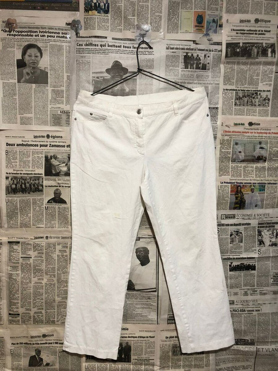 Ce pantalon blanc en denim est indispensable pour votre garde-robe. Style polyvalent, idéal pour des tenues décontractées ou élégantes. Confortable et moderne, parfait pour toutes les saisons.