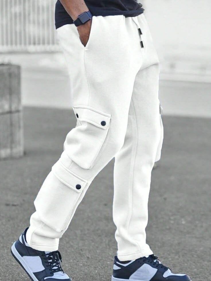 Pantalon cargo blanc pour homme, confortable et élégant. Poches pratiques et design moderne. Idéal pour un look décontracté et stylé.