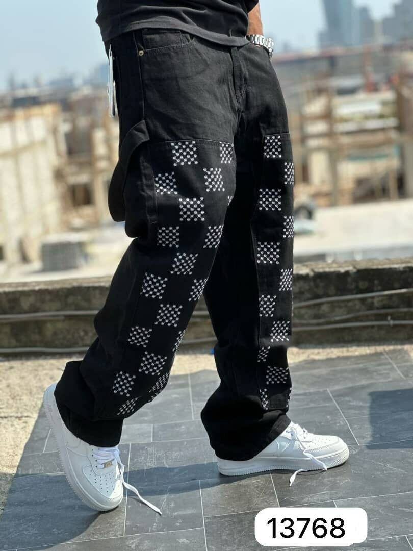 Optez pour un style unique avec ce pantalon cargo homme à motif carreaux. Confortable et tendance, il est idéal pour une tenue urbaine. Disponible en différentes tailles.