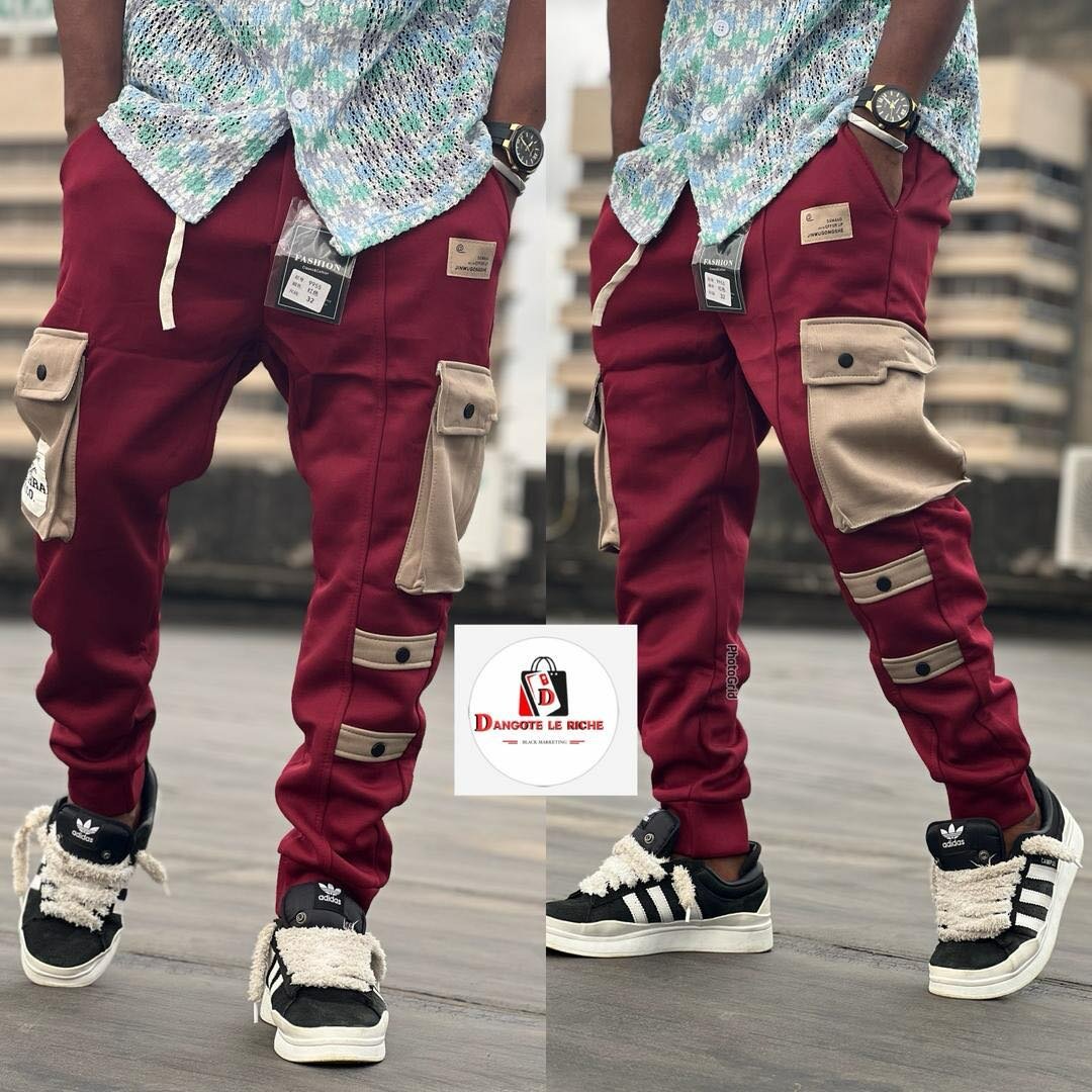 Optez pour ce pantalon cargo rouge unique pour hommes, alliant confort et style. Doté de poches multifonctions, il est parfait pour un look décontracté audacieux. Idéal pour les sorties urbaines ou les activités de plein air.