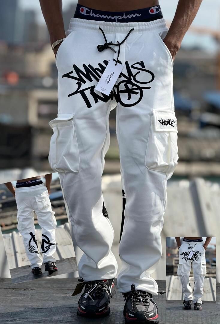 Optez pour ce pantalon cargo streetwear blanc pour un look urbain moderne. Fabriqué avec soin, il offre des poches pratiques et un style unique. Parfait pour les sorties décontractées et les activités quotidiennes.