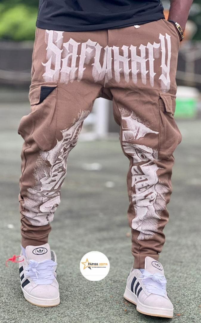 Pantalon cargo homme en style streetwear, idéal pour un look urbain moderne. Confortable et tendance avec motifs originaux. Parfait pour les sorties décontractées.