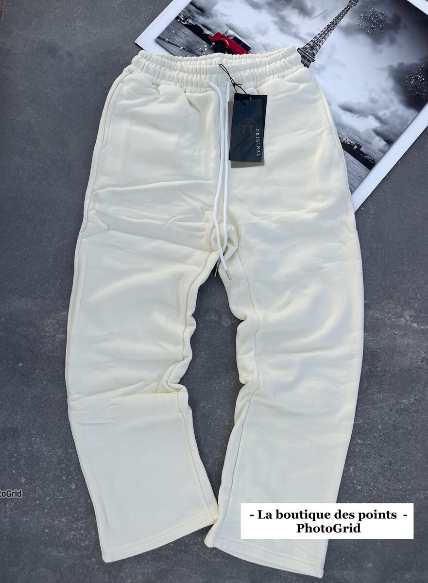 Découvrez notre pantalon de jogging blanc, parfait pour un confort quotidien et un style décontracté. Fabriqué avec des matériaux doux et élastiques, il est idéal pour la détente à la maison ou une promenade en ville. Sa coupe moderne le rend également polyvalent pour toutes vos tenues décontractées.