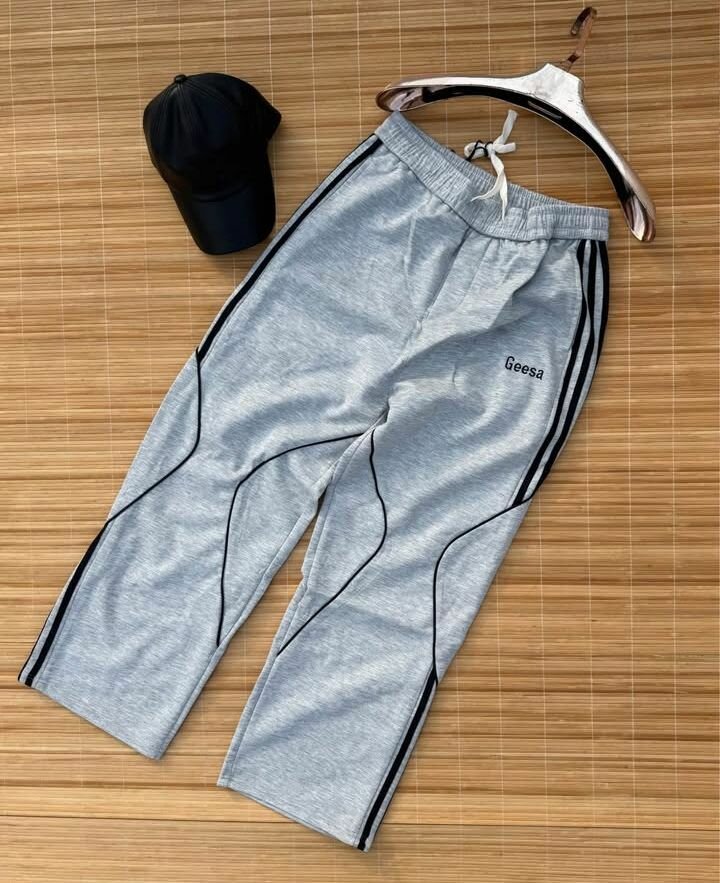 Pantalon de sport confortable et élégant, idéal pour les activités sportives ou le quotidien. Conçu pour offrir un maximum de confort et de liberté de mouvement. Disponible en gris avec des bandes latérales noires ou blanches.