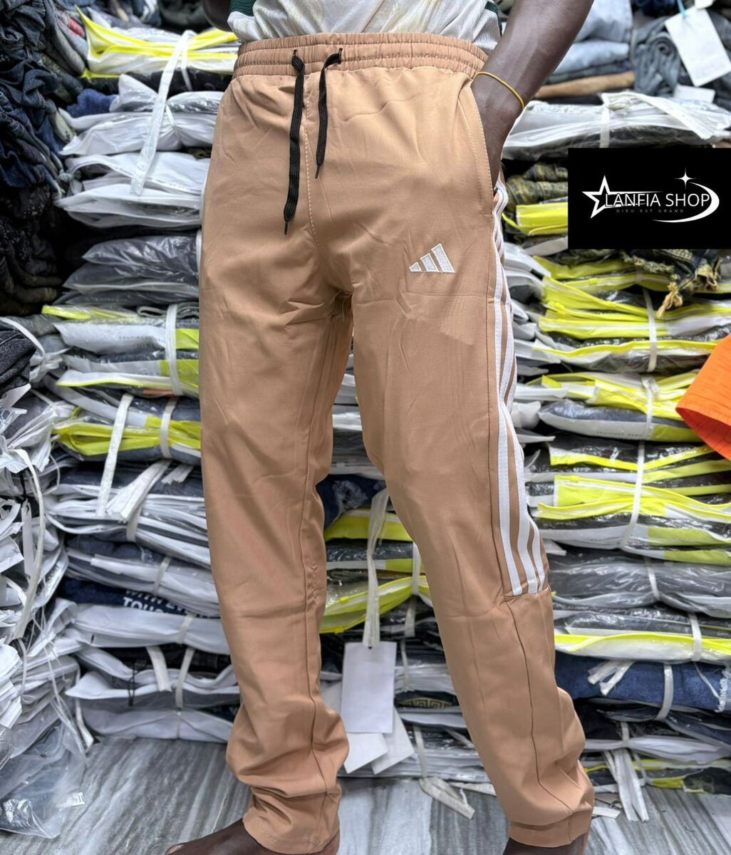 Découvre notre pantalon de sport pour homme, idéal pour l'entraînement et le quotidien. Confortable et stylé, il offre une liberté de mouvement optimale grâce à sa coupe décontractée et sa taille élastique. Parfait pour la salle de sport ou une tenue casual.